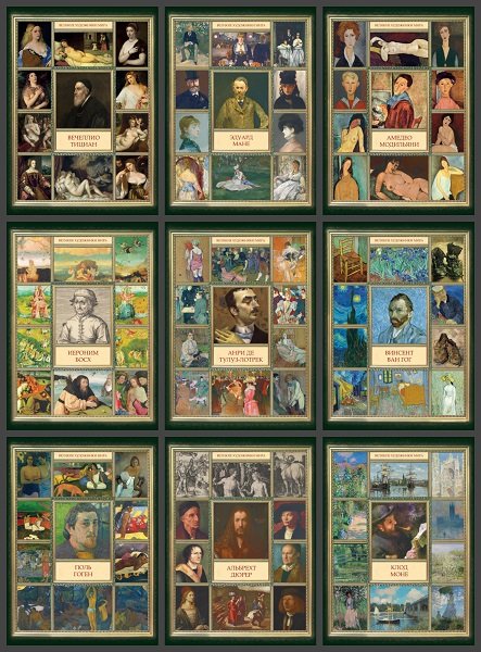 Серия - посвящена жизни и творчеству великих художников разных эпох, от Ренессанса до модерна. Каждая книга включает в себя биографические сведения о мастере и репродукции его самых известных картин, с полными названиями и подробными описаниями. Кроме стандартных биографий, в книгах содержатся малоизвестные факты о личной жизни и творчестве гениальных живописцев. Это своеобразный гид по миру искусства для «чайников», ликбез для тех, кто хочет хотя бы немного разбираться в мировой живописи.